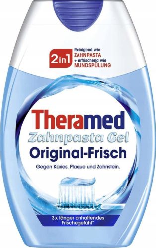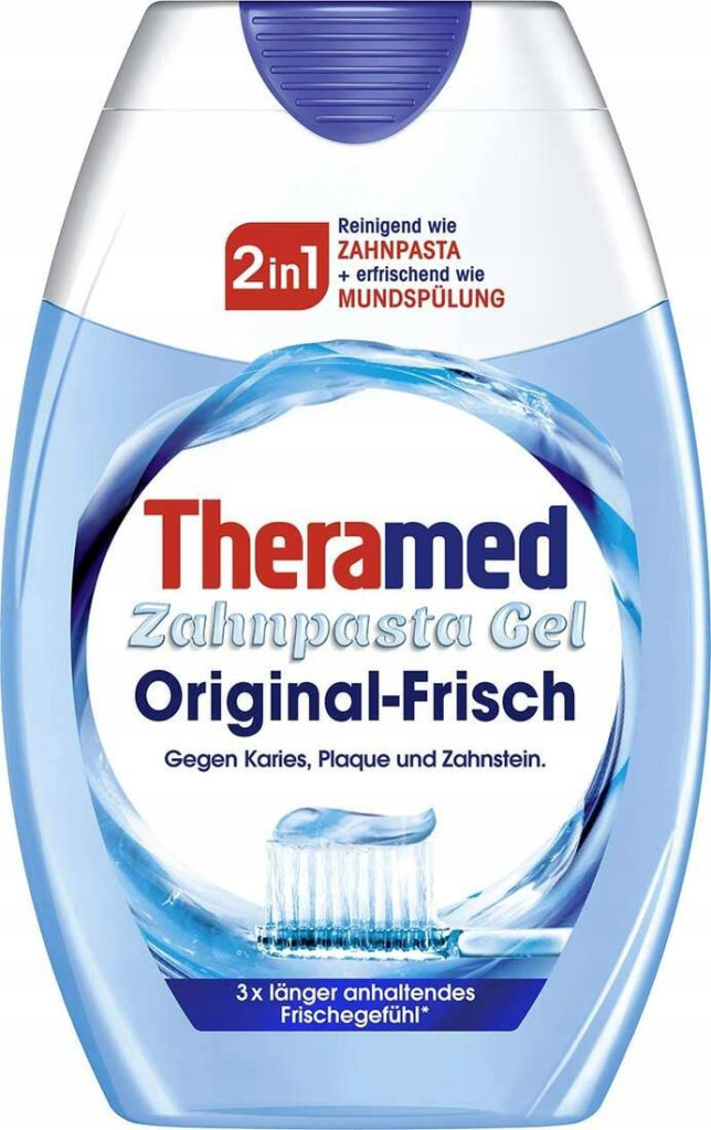 2w1: oczyszcza jak pasta do zębów + odświeża jak płyn do płukania jamy ustnej.