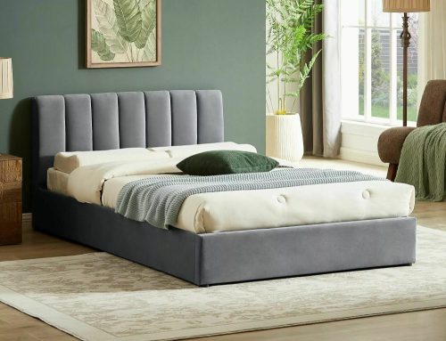 ✅ Montreal Velvet to łóżko tapicerowane z pojemnikiem na pościel, wykonane z wysokiej jakości materiałów. Tapicerka z aksamitu w kolorze szarym nadaje łóżku wyjątkowego uroku i dopasowuje się do najnowszych trendów. Wysoki, miękki zagłówek pozwala wygodnie się oprzeć i oddać ulubionym czynnościom, takim jak czytanie książek czy oglądanie telewizji. Łóżko zawiera w komplecie podnoszony stelaż z listew giętych osadzonych w elastycznych uchwytach, pod którym znajduje się pojemnik na pościel. To praktyczne rozwiązanie do sypialni, w której nie ma wiele przestrzeni i wysuwanie szuflad mogłoby być niemożliwe.