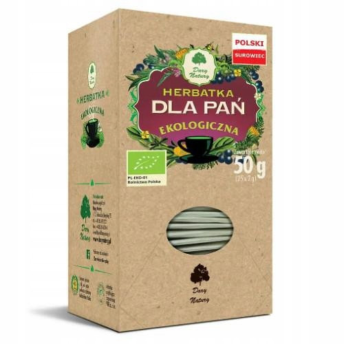 Zioła dla pań stosowane przez kobiety w każdym wieku, jako środek regulujący funkcjonowanie organizmu kobiety. Według literatury zielarskiej właściwości ziół i owoców wchodzących w skład kompozycji są pomocne w zakłóceniach i dolegliwościach związanych z miesiączką. Zioła mogą zapobiegać stanom zapalnym w obrębie układu rozrodczego. Zioła można pić tydzień przed zbliżającym się okresem. Składniki: owoc tarniny* 20%, pięciornik gęsi ziele*, ziele serdecznika*, krwawnika*, rdestu ostrogorzkiego*, jasnoty*, liść babki zwyczajnej*, kwiat koniczyny*, ślazu*, płatki nagietka* w różnych proporcjach *produkt rolnictwa ekologicznego