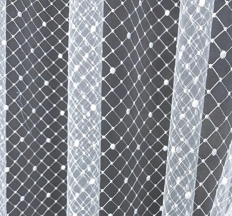Nowoczesne Firanki Do Salonu Pokoju Premium Haftowane Gotowe Na Taśmie. Można wieszać na żabki ale też taśma ma kieszonki na agrafki i haczyki. Firana delikatna haftowana ozdobi każdy salon. Materiał to Delikatny Tiul Haftowany białą nicią.