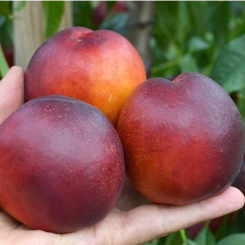 Jej dość duże 90-120 gramowe, kuliste owoce charakteryzują się żółtą skórką pokrytą intensywnym czerwono-fioletowym rumieńcem. Miąższ owoców jest jasnożółty, średnio zwięzły, lekko włóknisty, soczysty, bardzo smaczny i dobrze odchodzący od pestki. W przeciwieństwie do pozostałych odmian brzoskwiń nektaryny mają skórkę gładką i stosunkowo twardy miąższ.