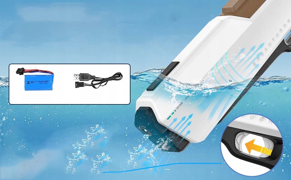 Elektryczny pistolet na wodę to doskonały wybór na gorące letnie dni. Dzięki łatwemu użytkowaniu, dużej pojemności i wysokiej trwałości zapewnia godziny zabawy na świeżym powietrzu. Idealny do użycia na plaży, w ogrodzie czy na basenie, zapewniając długotrwałe i dynamiczne strzelanie wodą.