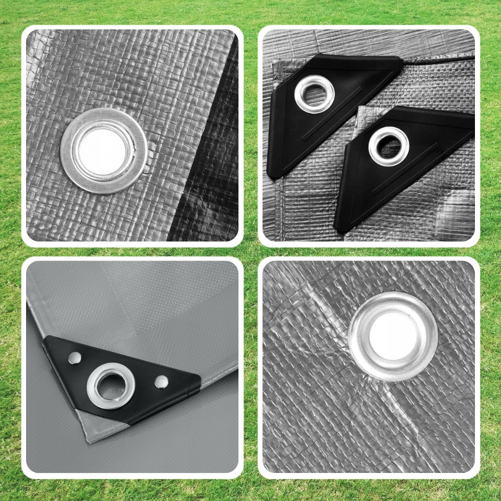 Plandeka wyposażona została w specjalne oczka, które są wykonane z aluminium, dzięki czemu nie rdzewieją i są wytrzymałe bez względu na warunki pogodowe.
