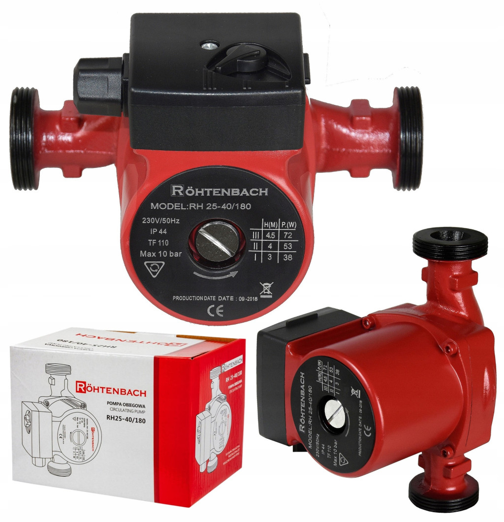 Pompa obiegowa RH 25-40/180 RÖHTENBACH jest pompą do wymuszenia obiegu wody w systemach Centralnego Ogrzewania. Dopracowana konstrukcja powoduje że pompy cieszą się dużą popularnością. Korpus pompy zrobiony jest z żeliwa, śrubunki podłączeniowe są standardowe co powoduje, że pompa pasuje w miejsce prawie każdej innej pompy.