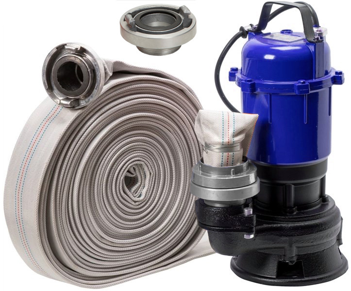 Do pompy można podłączyć zarówno wąż niebieski gumowy jaki parciany strażacki.