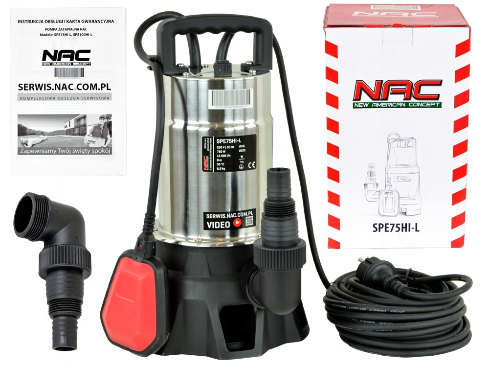 Pompa zatapialna o symbolu SPE 75HI-L to urządzenie produkowane przez firmę NAC. Może być wykorzystywana do przepompowywania i wypompowywania wody z wszelkiego rodzaju zbiorników, beczek, sadzawek, oczek wodnych itp. oraz napełniania ich wodą.