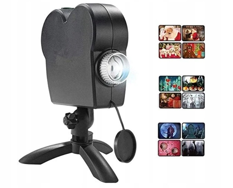 PROJEKTOR NA HALLOWEEN dodaje straszności na Halloween i sprawia, że staje się prawdziwe. Upiory i duchy, które tworzy są tak realne, że będziesz pewien, że naprawdę Cię nawiedziły. Te niesamowite Halloweenowe hologramy przestraszą wszystkie dzieci zbierające cukierki, a także Twoich sąsiadów na całe lata.