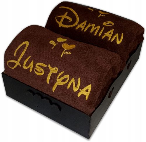 W cenie kompletu wykonamy na każdym ręczniku jednokolorowy haft, składający się z imienia - np. Justyna oraz wybranej grafiki.