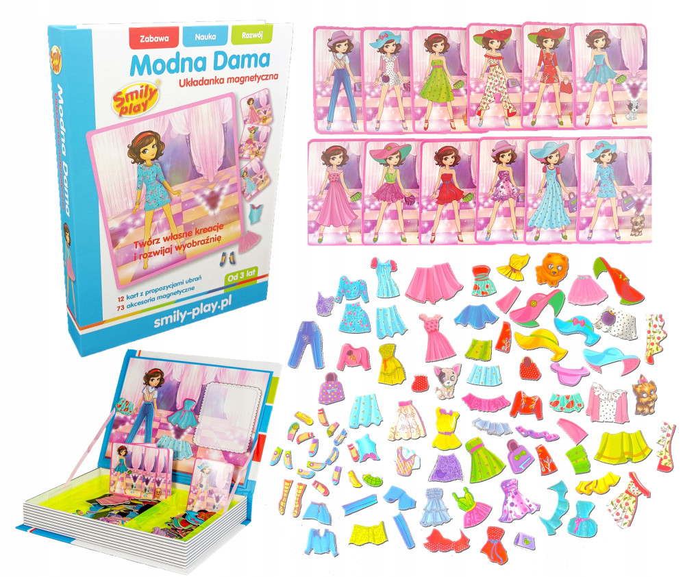 Układanka magnetyczna Modna Dama wprowadzi dziecko do świata mody i błyskotek.