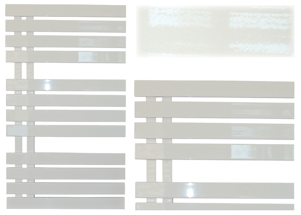 Efektowne, płaskie profile poprzeczne ułożone są w sposób ułatwiający zawieszanie ręczników i innych elementów odzieży. Asymetryczna konstrukcja daje możliwość montażu z kolektorem po lewej lub prawej stronie.