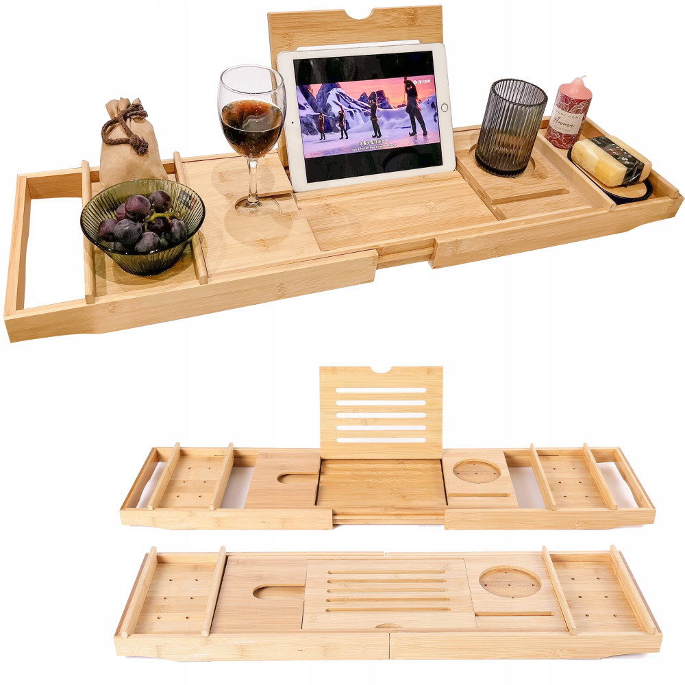 Elegancka i funkcjonalna półka na wannę z bambusa to doskonałe rozwiązanie, aby uczynić Twoje relaksacyjne chwile w wannie jeszcze bardziej wyjątkowymi. Półka łączy w sobie stylowy design z praktycznymi funkcjami, umożliwiając Ci cieszenie się kąpielą w pełni komfortu.