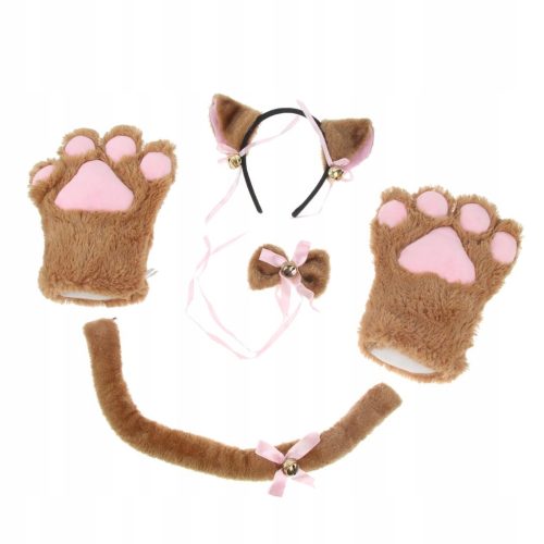 Kot Cosplay Zestaw Pluszowe Rękawiczki Kociak Kołnierz Uszy Łapy Kostium Partyjny Brązowy