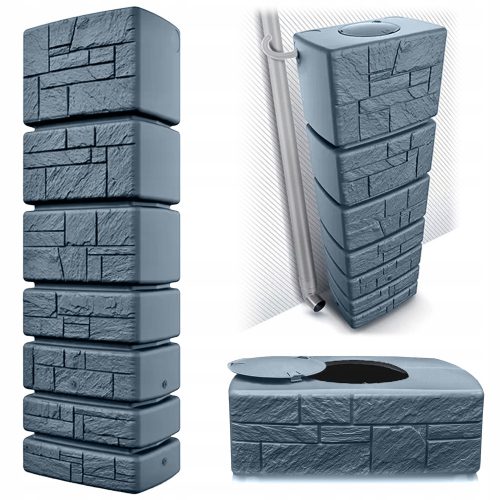 Zbiornik na wodę deszczową (deszczownica) Tower Stone IDTST350-429U marki Waterform to doskonałe rozwiązanie do oszczędzania wody. Jego frontowa ściana posiada dekoracyjny motyw kamienia, a forma i modny, neutralny kolor wpisuje się w trendy współczesnej architektury ogrodowej. Produkt wyposażony jest w górny otwór z pokrywą, cztery miejsca do przymocowania rury spustowej z rynny oraz cztery otwory gwintowane na kran lub szybkozłączkę do montażu węża ogrodowego (akcesoria nie znajdują się w wyposażeniu standardowym).