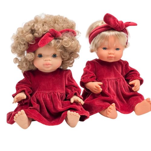 Przedmiotem aukcji jest piękna czerwona welurowa sukienka uszyta specjalnie dla hiszpańskich lalek Miniland. Pasuje również na lalki Paola Reina.