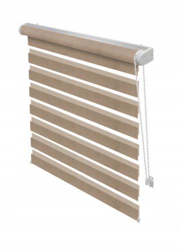 Roleta do montażu na ścianie, suficie lub wnęce okiennej. Tkanina tkana na przemian gęstym i rzadkim splotem. Przesuwanie tak utkanych pasów względem siebie umożliwia płynną regulację dopływu światła w do pomieszczenia. Obsługa rolety łańcuszkowym napędem koralikowym z możliwością instalacji z prawej lub lewej strony.