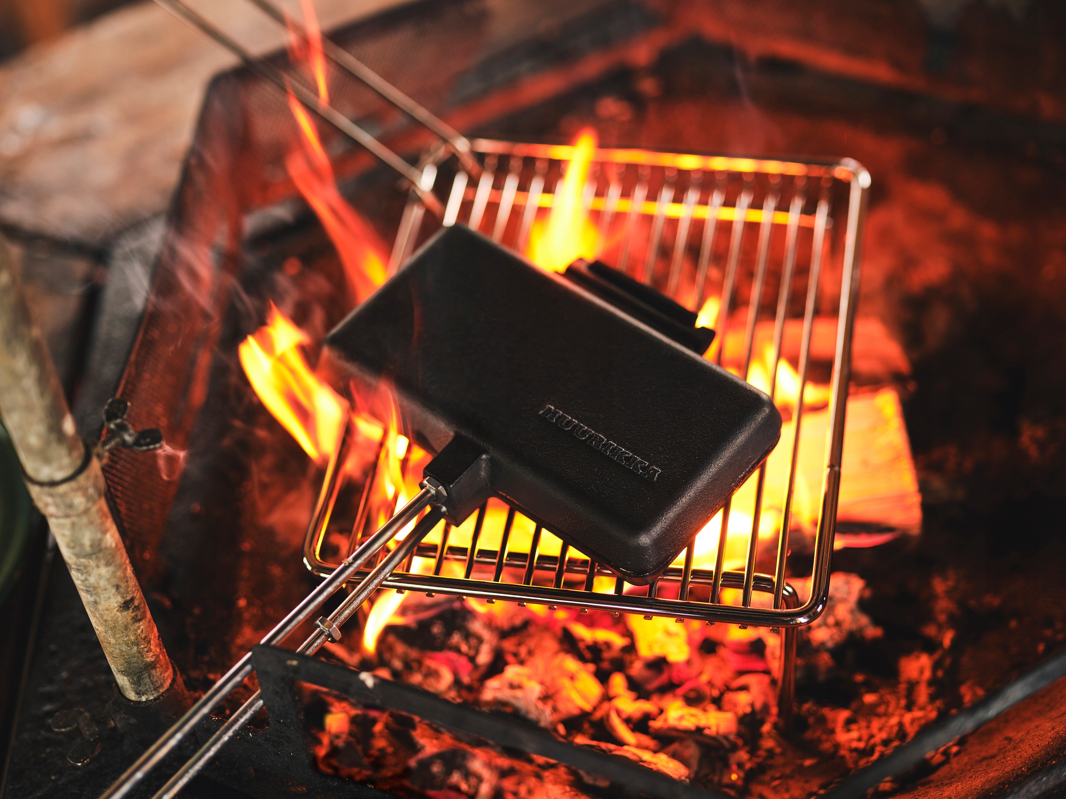 Opiekacz Muurikka to idealne narzędzie do przygotowywania ciepłych kanapek przy ognisku lub na grillu. Ten opiekacz do kanapek może być również używany do przygotowywania różnych potraw z mięsa, ryb lub warzyw. Wykonany z wytrzymałego żeliwa, doskonale trzyma ciepło i równomiernie rozprowadza je dla idealnego pieczenia.
