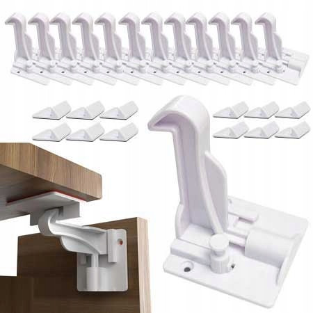 Zabezpieczenia szafek są kompatybilne z większością rodzajów mebli, włączając w to szafy przesuwne, szafki kuchenne, łazienkowe i inne. To sprawia, że są one wszechstronne i idealne do użytku w różnych częściach domu. Duży zestaw 12 sztuk zabezpieczeń sprawi, że możesz zabezpieczyć sporą część powierzchni mieszkalnej.