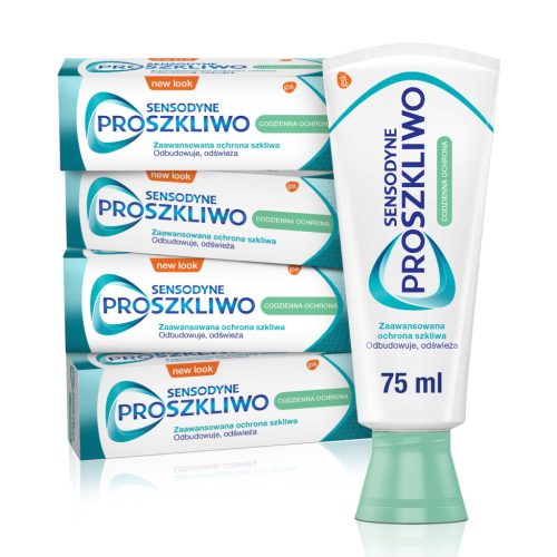 Sensodyne ProSzkliwo Codzienna Ochrona o pojemności 75 ml to pasta do wrażliwych zębów. Kwasy obecne w Twojej codziennej diecie mogą powodować zmiękczanie szkliwa zębów, w wyniku czego jest ono podatne na ścieranie. W miarę osłabienia szkliwa, zęby mogą utracić naturalną biel i stać się bardziej wrażliwe. Sensodyne ProSzkliwo Codzienna Ochrona Miętowy Smak chroni zęby przed próchnicą, jednocześnie wzmacniając i utwardzając szkliwo, a jej miętowy smak pozostawia uczucie świeżości i czystości.