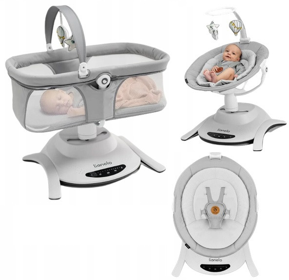 O wszystkich ustawieniach produktu zdecydujesz z poziomu dotykowego panelu sterowania lub za pomocą pilota. Dzięki cichej pracy silnika, możesz mieć pewność, że nie wybudzi dziecka, kiedy utnie sobie słodką drzemkę. Model ten odtwarza 12 spokojnych melodii oraz pałąk z zabawkami - 3 w funkcji bujaczka, 2 w funkcji łóżeczka. Akcesoria dodatkowo ćwiczą koncentrację dziecka, dostarczają mu nowych bodźców i zachęcają do wyciągania rączek. Bujaczek Lionelo Bella Set 2w1 jest lekki, bez problemu przeniesiesz go i ustawisz w dowolnym miejscu. Podłogę przed zarysowaniem ochronią podkładki antypoślizgowe. W przypadku zabrudzeń ramę możesz przetrzeć mokrą szmatką, a poszycie i pokrowiec materaca prać ręcznie.