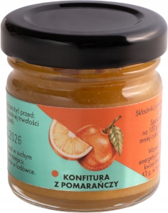 Sporządzono z 120g owoców (pomarańczy) na 100g produktu. Produkt zawiera ponad 30% mniej cukru niż konfitura o łącznej zawartości cukru 60 g na 100 g produktu.