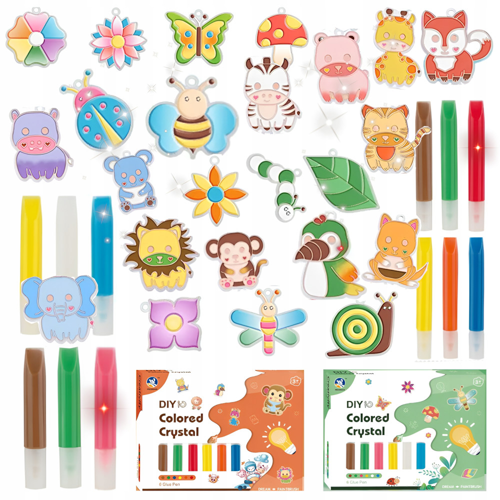 Duży zestaw artystyczny do malowania witrażyków na szablonach.