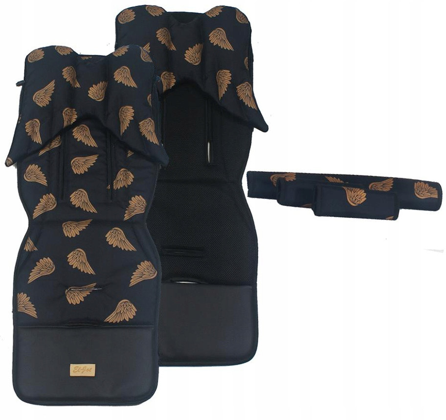 Uniwersalna dwustronna wkładka EL 24 z poduszką redukcyjną w kształcie SKRZYDEŁEK (S) i ochraniaczami na pasy naramienne i barierkę wózka spacerowego to nie tylko piękny wygląd wózka spacerowego czy ochrona przed zabrudzeniami tapicerki ale przede wszystkim zapewnienie wygodnej i komfortowej podróży Twojemu Maluszkowi w spacerówce. Wkładka chroni delikatną skórę dziecka przed kontaktem z syntetyczną i twardą tapicerką wózka dziecięcego.