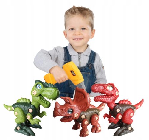 ⭐ zestaw zawiera 89 el., w tym 3 dinozaury, wiertarkę oraz 3 śrubokręty