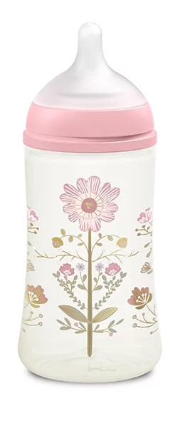 Złota butelka 270 ml ze smoczkiem fizjologicznym SX Pro o średnim przepływie, zaprojektowana z myślą o rozwoju jamy ustnej dziecka. Wskazana dla niemowląt +3 m, smoczek pozwala na utrzymywanie języka w tej samej naturalnej pozycji, jak podczas karmienia piersią z piersi mamy. Smoczek zatwierdzony przez Hiszpańskie Towarzystwo Stomatologii Dziecięcej.
