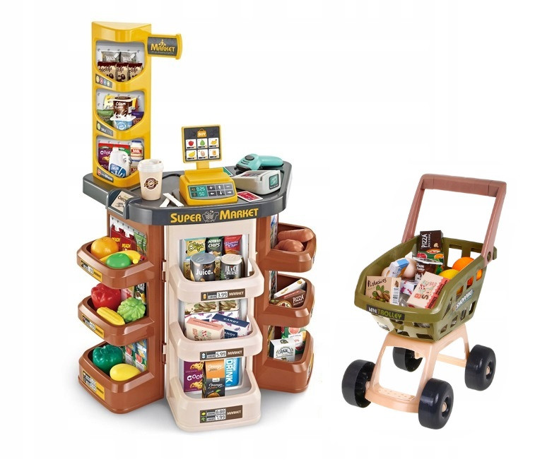 Zestaw przetestowany przez dzieci i ponadczasowy, będzie doskonałym prezentem. Kupuj artykuły spożywcze, owoce i warzywa, ciastka i słodycze, mleko i soki i wiele innych. Dziecko poczuje się jak na prawdziwych zakupach. Relistyczne elementy zestawu sprawią, że zabawa będzie przypominała prawdziwe życie i rozwinie umiejętności Twojej pociechy.