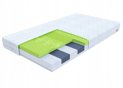 Dodatkowa warstwa z profilowanej pianki wysoko-elastycznej R44 dzieli materac na 7 stref, zapewniając większe uczucie komfortu. Warstwy materaca łącząc się ze sobą, zapewniają podparcie każdej strefie ciała, dbając o prawidłowe podparcie kręgosłupa. Atutem tego modelu jest jego trwałość.