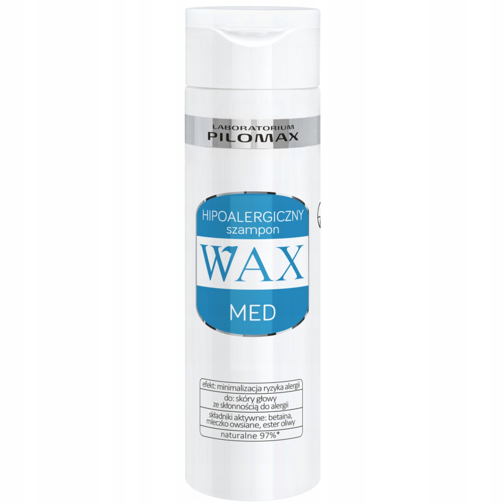 Szampon hipoalergiczny WAX Med przeznaczony do skóry głowy ze skłonnością do alergii. Rekomendowany do codziennego mycia skóry głowy i włosów. Polecany przez trychologów.