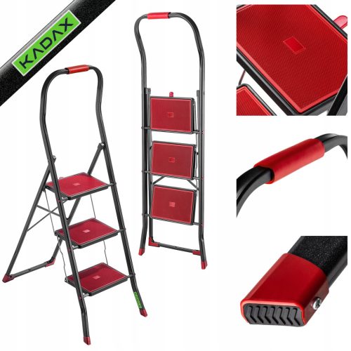 ✅RÓŻNE RODZAJE – rozkładana drabina stalowa dostępna jest w wersji z 2 i 3 stopniami. Jej wyrazisty czarno-czerwony kolor będzie wyróżniać się na tle innych sprzętów. Wybierz model, który najlepiej sprawdzi się w Twoim przypadku i ciesz się bezpieczną drabiną do codziennego użytku.
