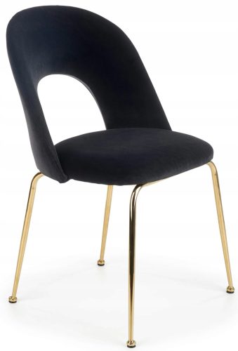 K385 to eleganckie krzesło do jadani lub salonu, którego oryginalny kształt przyciąga spojrzenie, ale również wpływa na ergonomiczność tego mebla. Jego oparcie i siedzisko nie są bezpośrednio złączone; większa to głębokość mebla. K385 tapicerowano tkaniną velvet, zaś jego stelaż powstał ze stali chromowanej na kolor złoty, co czyni z tego modelu krzesło idealne do aranżacji w stylu glamour.