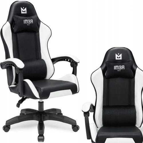 Ten czarno-biały fotel do komputera wyposażony jest w poduszki, które mają za zadanie wpierać kręgosłup podczas siedzenia. Poduszka na krzesło gamingowe ulokowana w okolicach karku osoby siedzącej będzie odciążać odcinek szyjny kręgosłupa. Poduszka lędźwiowa na fotel gamingowy będzie zaś wsparciem dla dolnego odcinka pleców.