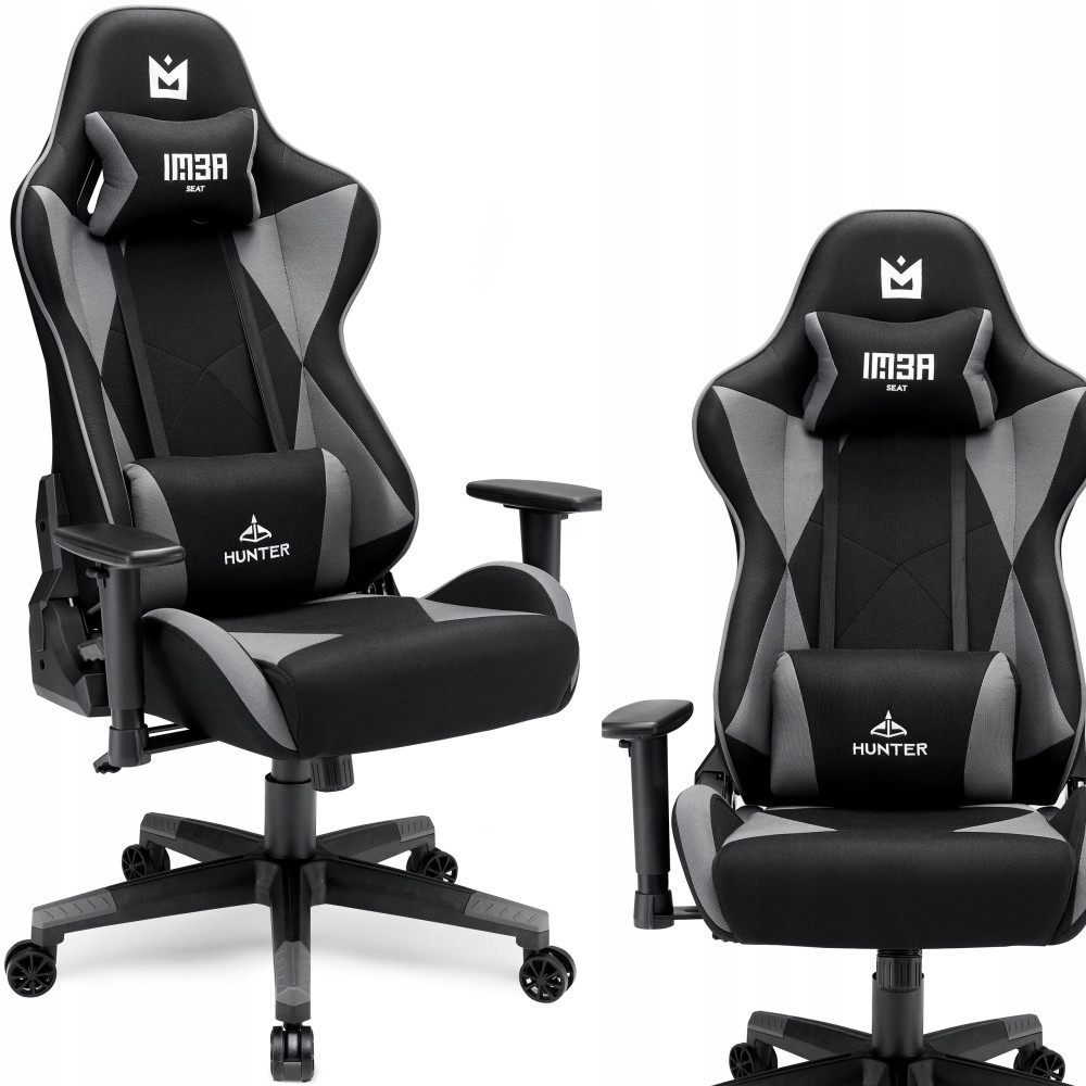 Tapicerowane krzesło IMBA HUNTER ma kubełkową konstrukcję, co oznacza, że jest dobrze wyprofilowany i ma nieco zwiększoną głębokość. Ten fotel dla gracza wyposażony jest w regulowane podłokietniki, co umożliwia zmianę ich położenia w pionie i w poziomie. Można też regulować wysokość siedziska i oparcia, co umożliwia dostosowanie parametrów do potrzeb użytkownika. Dodatkowo oparcie może zostać rozłożone do pozycji leżącej.