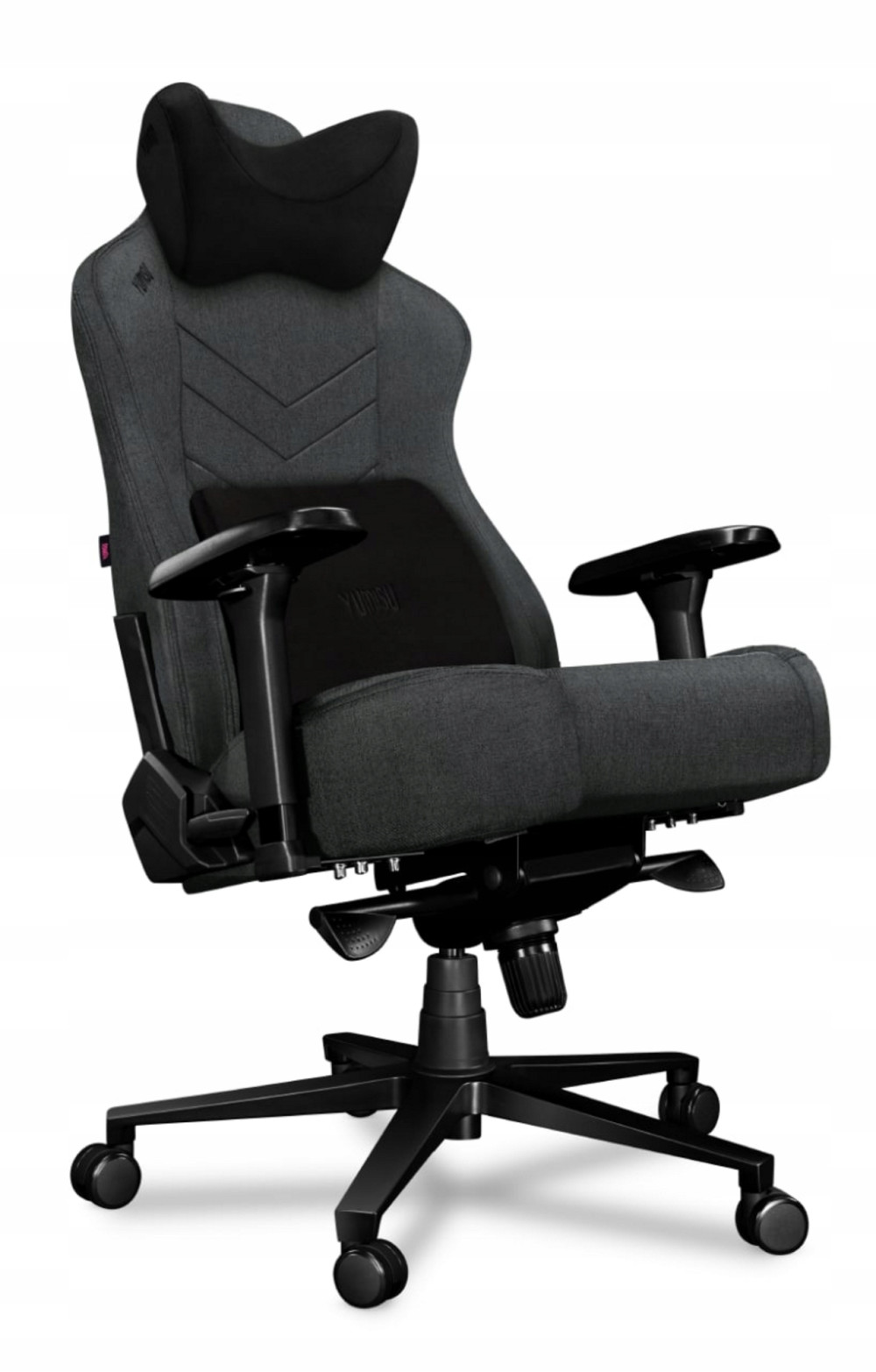 Yumisu stara się w tym aspekcie, jak najbardziej zadbać o kręgosłup użytkownika. Nie bez powodu w zestawie z fotelem znajduje się welurowa poduszka pod odcinek szyjny z pianki memory foam oraz specjalny wałek pod dolne plecy z tego samego materiału. Memory foam zapamiętuje Twoją sylwetkę i dopasowuje swój docisk do kształtu ciała, dzięki czemu możesz zdecydowanie dłużej przesiadywać przed ulubionym tytułem bądź przy pracy.