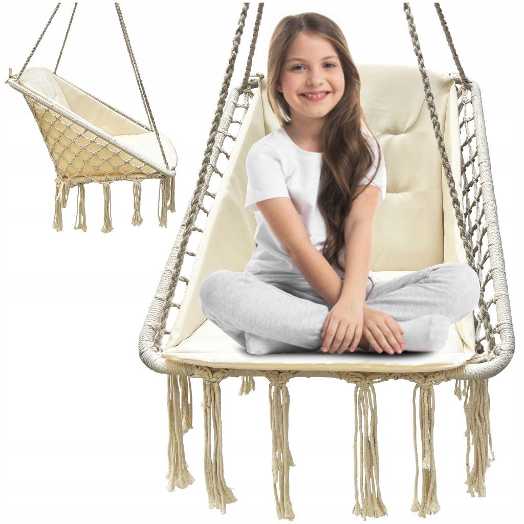 Huśtawka wykonana została z mocnego sznura oraz metalowych obręczy. Solidne mocowania zapewniają bezpieczeństwo.
