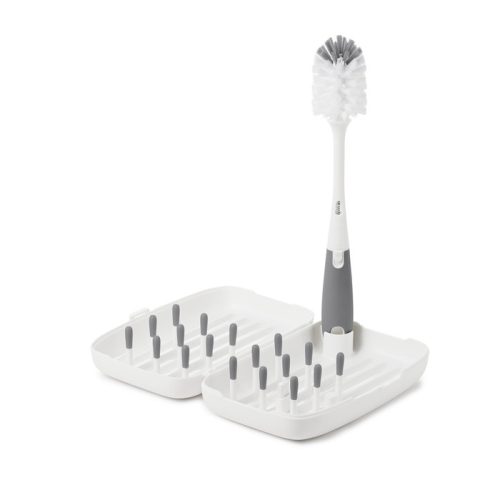 Przenośny zestaw do szybkiego mycia i suszenia OXO Tot, idealnie sprawdzi się podczas podróży. Kompaktowy, niewielkich rozmiarów zestaw do czyszczenia z pewnością zmieścić się w torbie na pieluchy. Pojemnik i jednocześnie suszarka posiada elastyczne wypustki które pomieszczą butelki, smoczki, i inne małe akcesoria. W zestawie z suszarką znajduje się składana szczotka z miękkim włosiem dla delikatnego czyszczenia lub szorowania oraz miękki antypoślizgowy uchwyt. Dodatkową zaletą szczotki jest silikonowy środek na uchwycie rączki, którym można wyczyścić detale trudno dostępne. Pojemnik posiada specjalne miejsce na umieszczenie szczoteczki. Otwory wentylacyjne umożliwiają szybkie suszenie. Zajmuje niewiele miejsca, można ustawić ją na parapecie czy blacie kuchennym. Łatwa do utrzymywania czystości.
