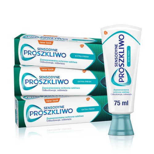 Kwasy w Twojej codziennej diecie mogą narazić ochronną barierę Twoich zębów, sprawiając, że stają się one wrażliwe na powolną erozję. Specjalna formuła pasty ProSzkliwo Extra Fresh ma za zadanie ochronić zęby przed szkodliwym działaniem erozji kwasowej. Przy każdym użyciu pasty ProSzkliwo Extra Fresh specjalnie opracowana formuła aktywnie wzmacnia i utwardza osłabione kwasem szkliwo, a dodatkowo pozostawia uczucie świeżości czystości.