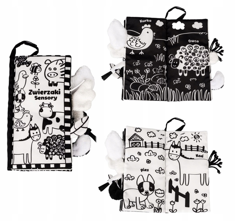 W tej kontrastowej książeczce pochowały się różne zwierzaki! Czy uda Ci się rozpoznać do kogo należy każdy z ogonków? Różnią się one fakturą materiałów, z których zostały wykonane, przez co stymulują zmysł dotyku maluszka.
