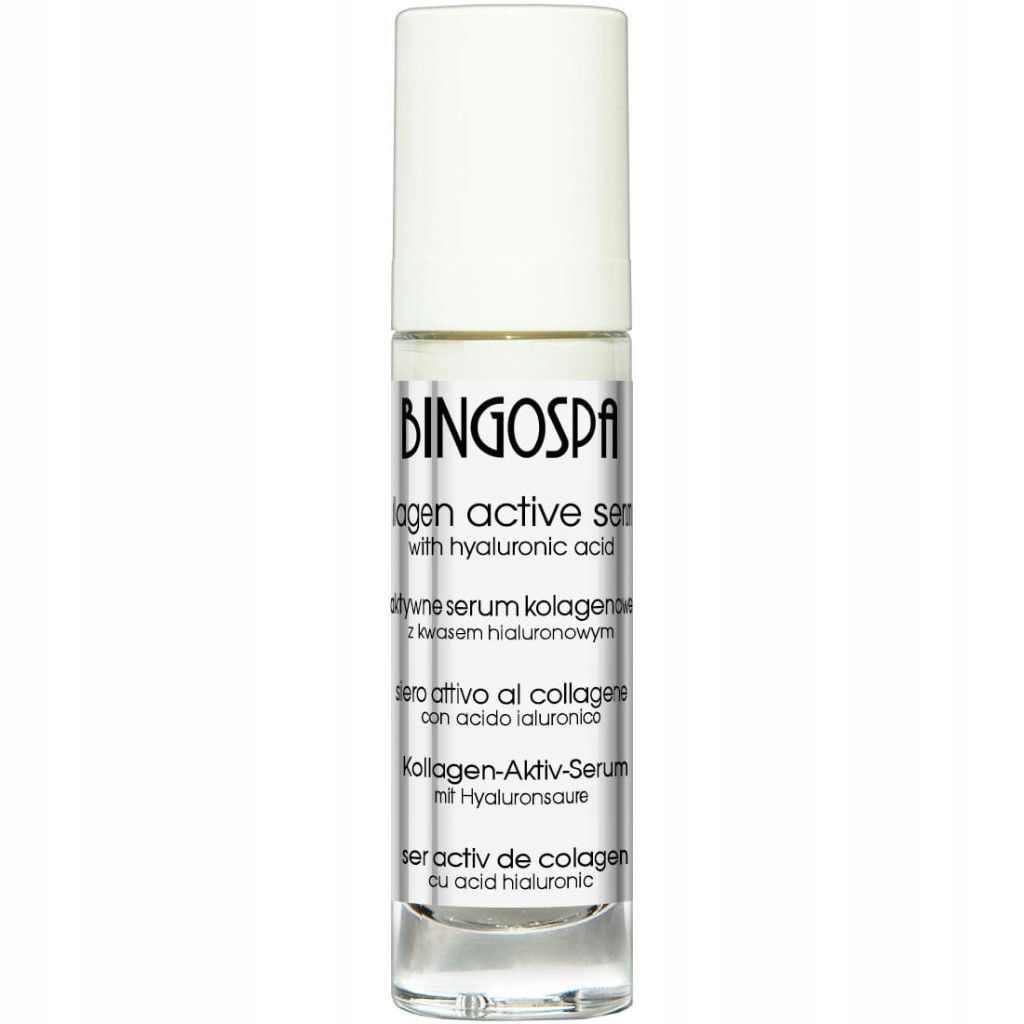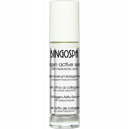 Aktywne serum kolagenowe BINGOSPA o właściwościach intensywnie nawilżających i odżywiających, przeznaczone jest do pielęgnacji skóry wieku dojrzałego, skóry zmęczonej lub przesuszonej.