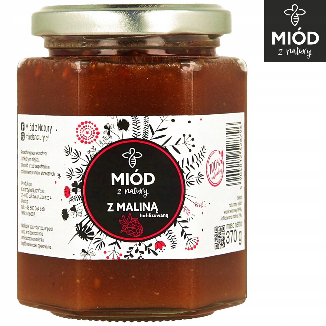 Do prawdziwego, naturalnego kremowanego miodu rzepakowego dodano 2% liofilizowanej maliny.