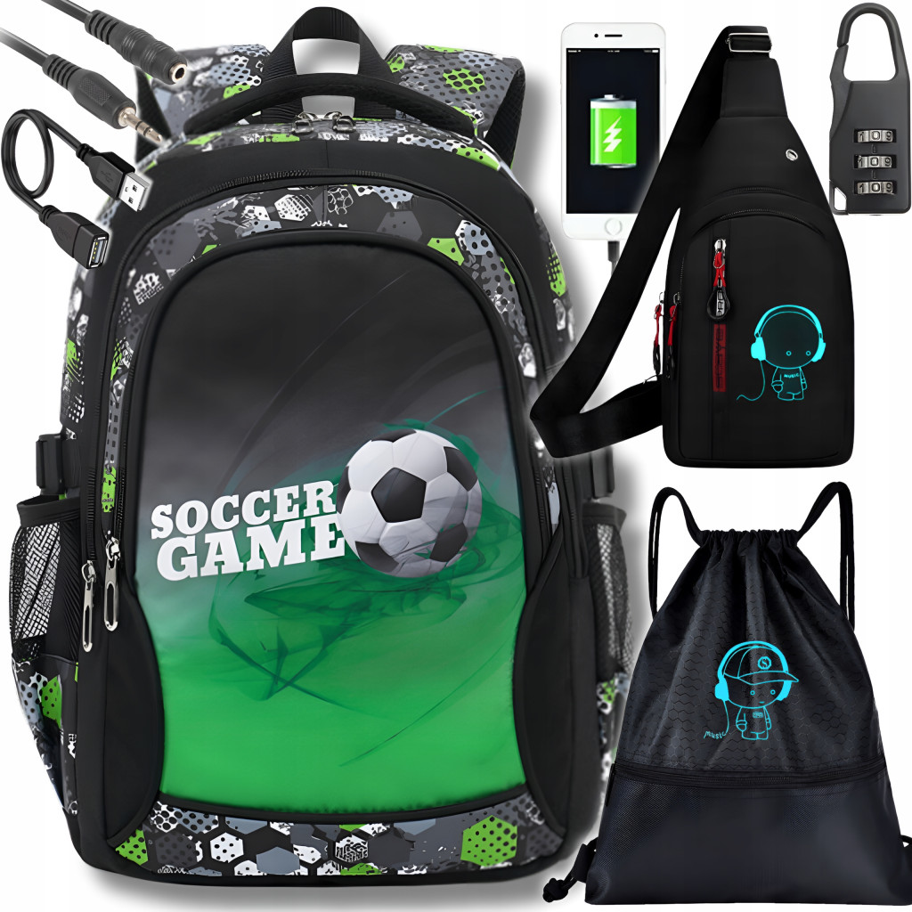 Set Complet Rucsac Școlar cu USB, Torbă Luminată și Husă Pentru Gym 6 în 1 - Ideal Pentru Elevi