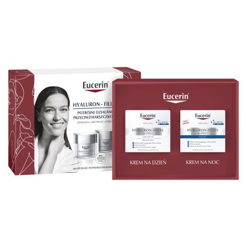 W skład zestawu Eucerin Hyaluron-Filler wchodzą: przeciwzmarszczkowy krem na dzień SPF15 i krem noc z kwasem hialuronowym i dekspantenolem. Kremy do twarzy Eucerin:
