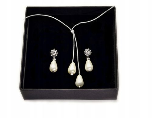 Piękny elegancki i modny komplet kryształowo - perłowy Produkt markowy czeskiej firmy JABLONEX znanej na całym świecie z wysokiej jakości biżuterii szklanej z użyciem oryginalnych kryształów austriackiej firmy SWAROVSKI . Posiadają one dużą ilość charakterystycznych cięć oraz głębię co daje efekt jedynego w swoim rodzaju blasku. Klipsy i naszyjnik z błyszczących pereł w kształcie łezek.Polecamy na różne okazje .