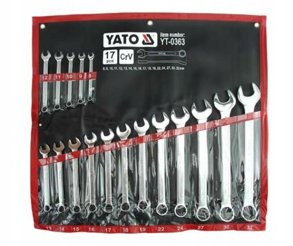 Wysokiej jakości klucze płasko-oczkowe marki YATO. Zestaw 17 kluczy w rozmiarach 8-32mm plus etui.