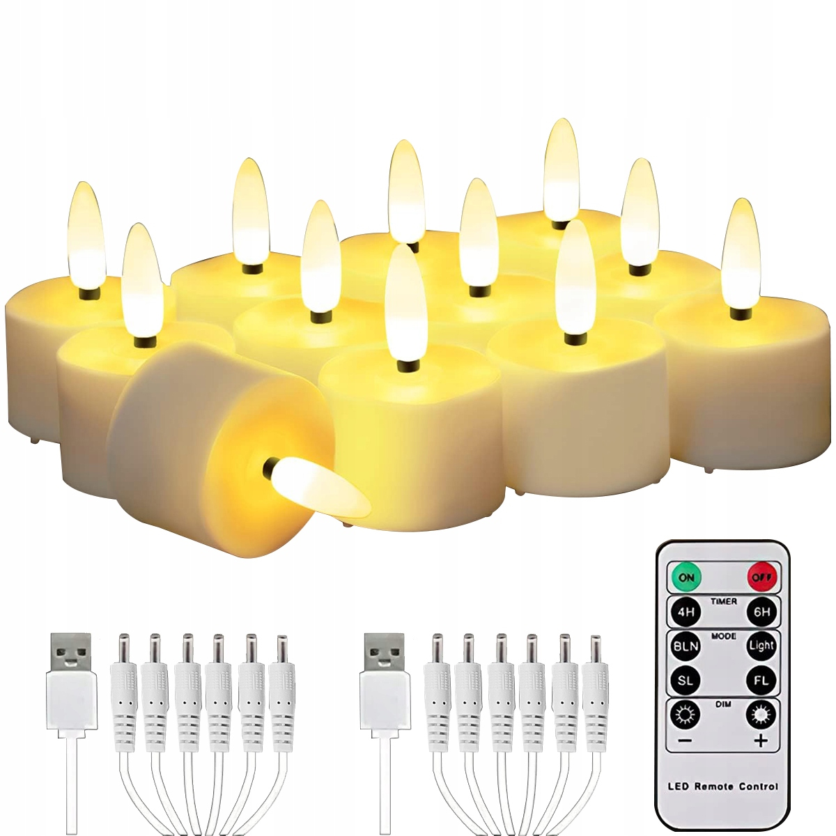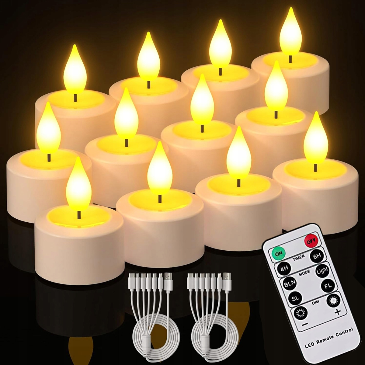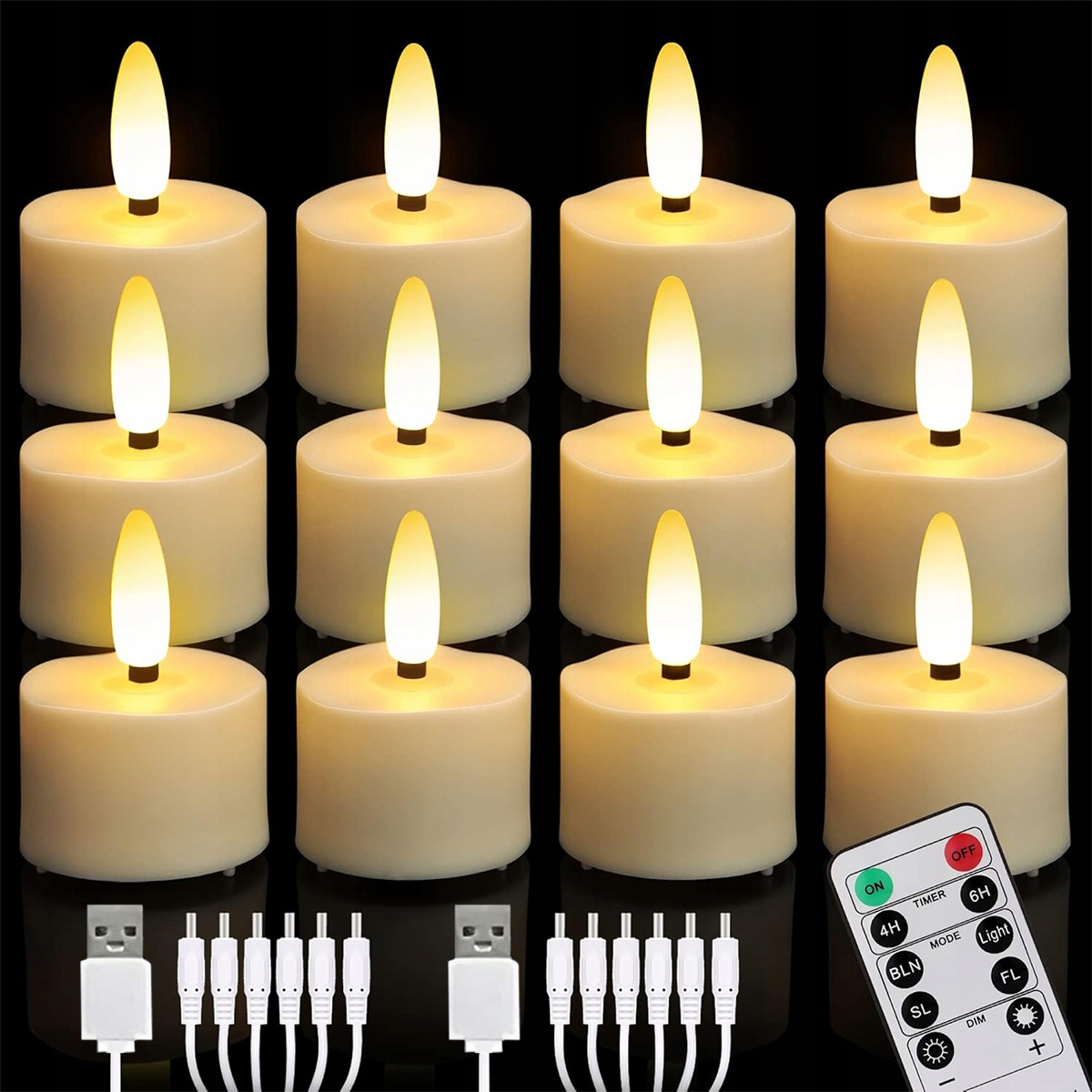 �12 szt. Ładowalne podgrzewacze z pilotem, przyciemniane podgrzewacze LED, ciepłe białe świece, akumulatorowe świece bezpłomieniowe do dekoracji wnętrz