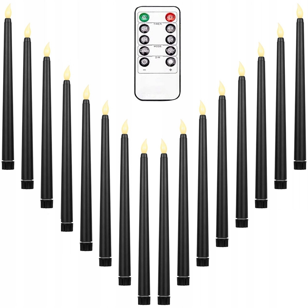 ✅16 sztuk elektronicznych świec o długości 27,5 cm z pilotem , czarne