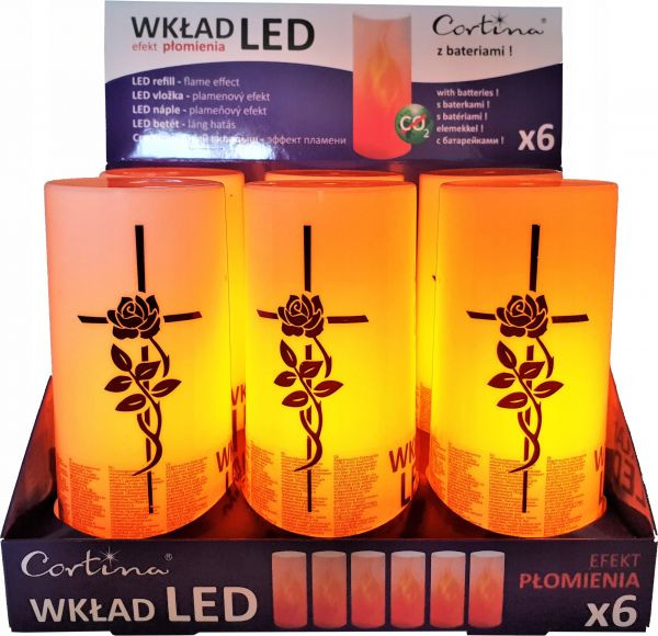 Prezentowany wkład do zniczy oferowany jest bez baterii w zestawie.