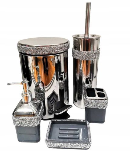 Piękny zestaw łazienkowy glamour w kolorze srebrnym z pirytem.